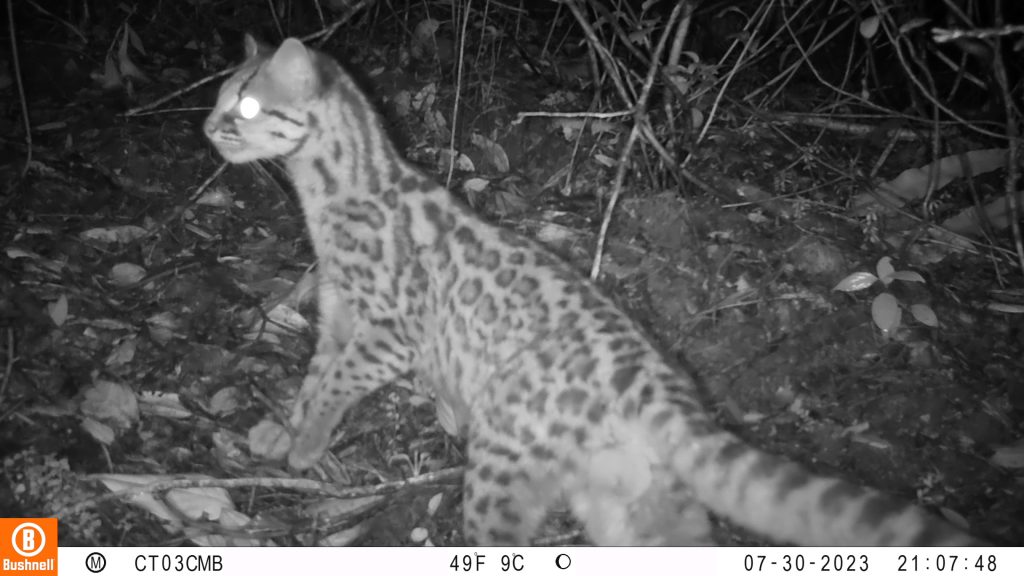 Es una de las especies más difíciles de avistar en Bogotá. Se trata de un felino nocturno, carnívoro y en estado vulnerable de amenaza debido a la pérdida de hábitat y los conflictos socioambientales. Ha sido registrado principalmente en los ecosistemas de bosque altoandino, como los Cerros Orientales, en las localidades de Usme y Chapinero. Entre 2023 y 2024, fue registrado 15 veces por las cámaras trampa de la Red de Monitoreo de Fauna.